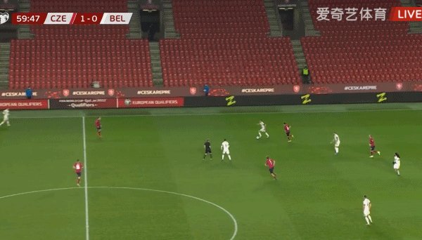 50'捷克左路进攻,普罗沃德禁区前沿得球内切,右脚远射破门,捷克1-0领先!